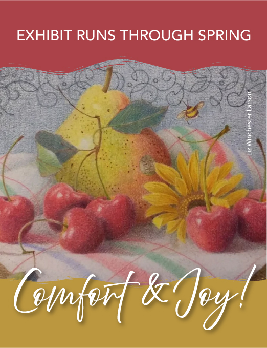 The current exhibit at the Gallery @ Syd’s is “Comfort & Joy!” which opened Saturday, November 15, 2025.